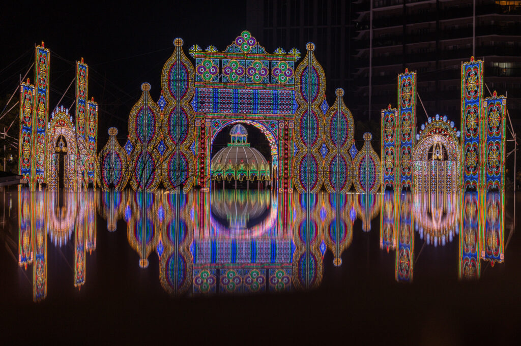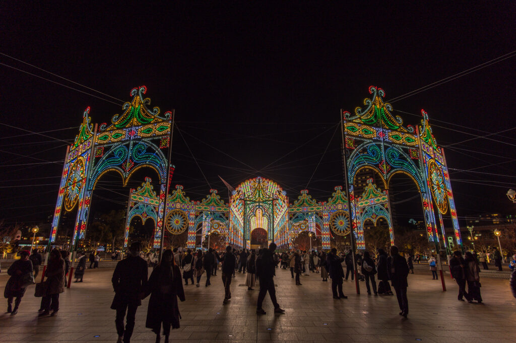 Les œuvres sont exposées dans différents lieux de la ville de Kobe.Les visiteurs pourront admirer une oeuvre de lumière de 50 mètres de long et 22 mètres de haut dans le parc Higashi Yuenchi, ainsi qu’une collection de petites œuvres lumineuses dans l’ancien quartier étranger.