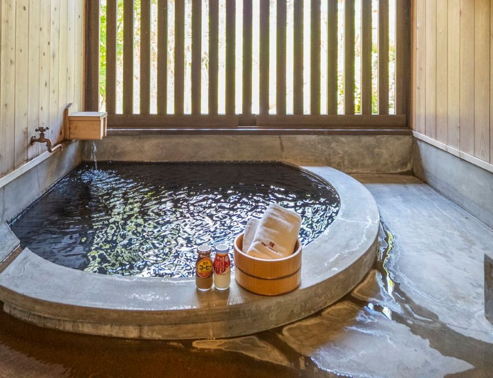 L’eau thermale des bains est pure à 100%, sans filtration ni ajout. Il s’agit ‘une eau alcaline simple contenant du soufre, laissant une sensation légèrement soyeuse sur la peau et propice à une relaxation tranquille.